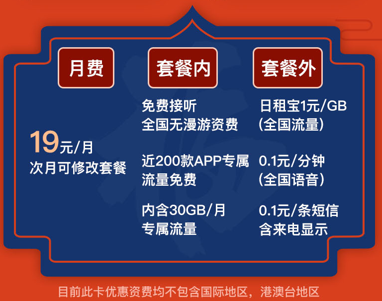 5、目前王卡资费优惠均不包含国际地区、港澳台地区。