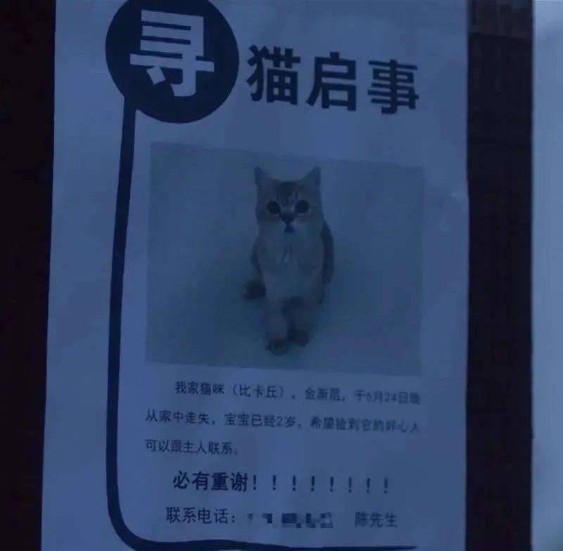 《三十而已》中 "寻猫启事“出现的联系方式,是现实中佛山市民陆先生的工作手机号