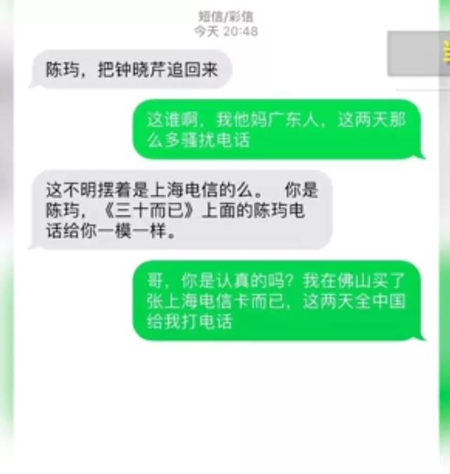 没想到对面也回复得很快:“这不摆明着是上海电信的么。你是陈屿,《三十而已》上面的陈屿电话跟你一模一样。”