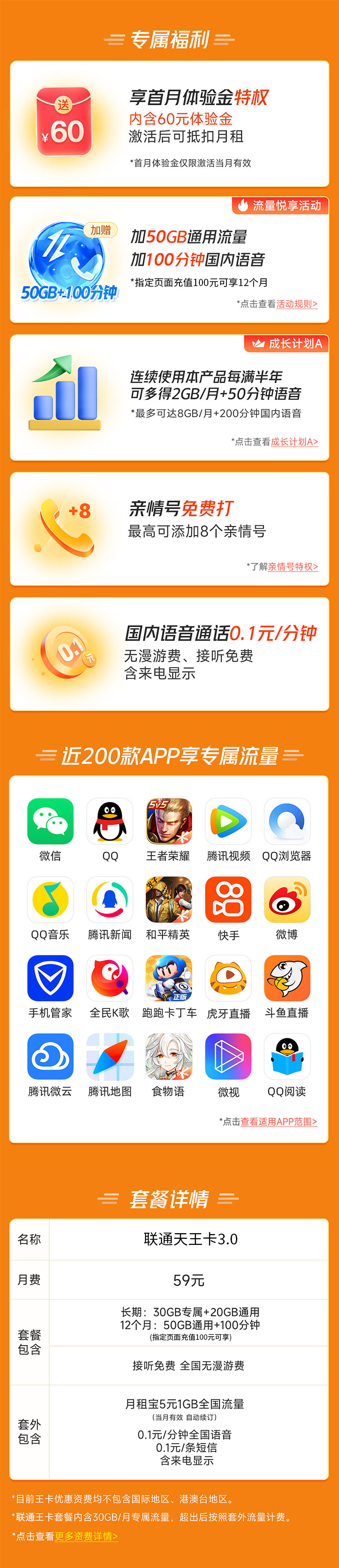下单需要预存100话费,可享59元套餐加赠50GB通用+100分钟(共计100G流量+100分钟通话),有效期12个月,还可享首月体验金60元(当月用完,套餐内流量+语音的话按天计),一年后恢复原59套餐(20G通用流量+30G专属流量),省内办理